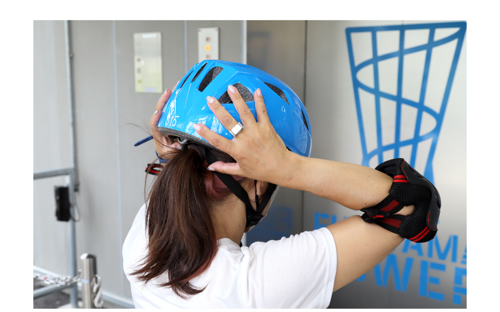 プロテクターにヘルメットという完全装備で、いざ出陣~!