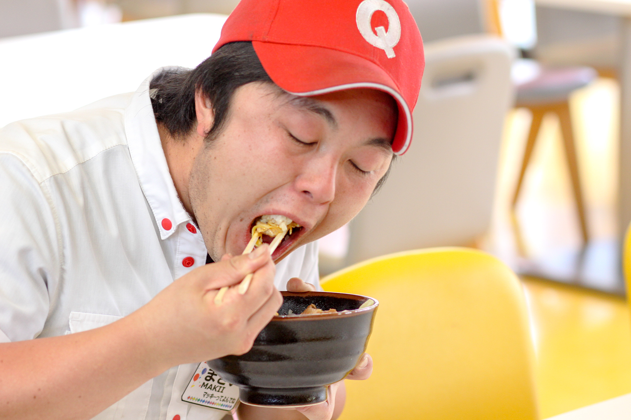 ランチタイムに賑わうフードコートに、またもやスタッフの姿!?無心でごはんをかき込むその丼の中身は…ニンニクのパンチが効いた、伝説のすた丼屋監修のオリジナルスタミナ丼。次の日を気にしたら食えない!って、いやいや今を気にして…。