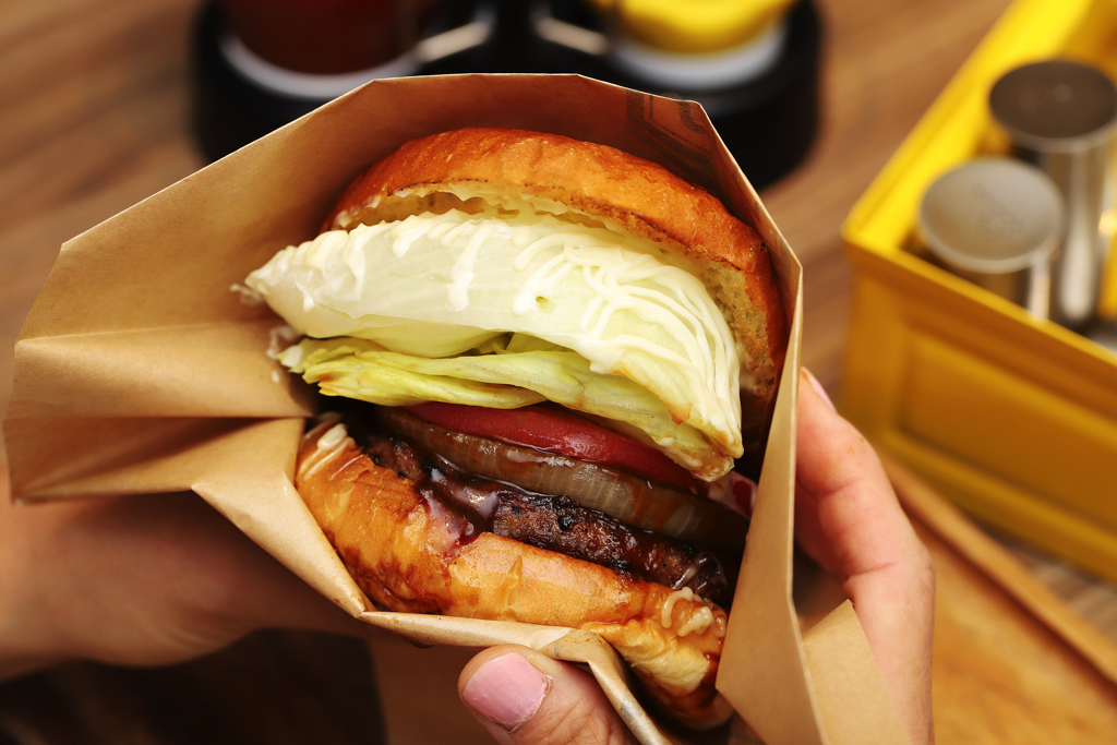 淡路島産の甘くてジューシーな玉ねぎを贅沢に使用したバーガーは、出来たてを頬張りたいもの。テーブル席やカウンター席などがあるので、イートインでぜひ。もちろんテイクアウトもバーガーのほか、各種サイドメニューもOK。事前に電話予約しておくと、受け取りもスムーズだ。