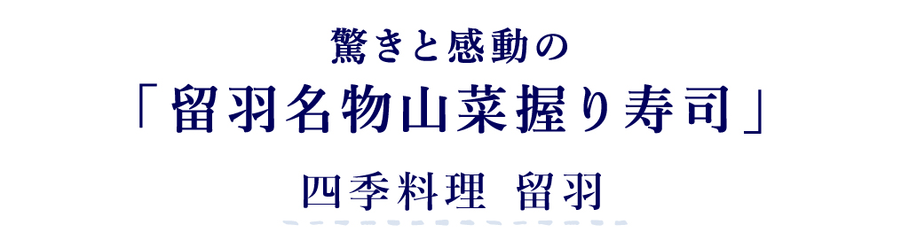 店主自らが山で採った、その時期ならではの味覚を握り寿司に。ほろ苦い山菜やほのかに香る花…素材を十分に生かした、やさしい味付けがほどこされた寿司に、五感が冴え渡る。食べるたび驚きと感動に出会える逸品を。