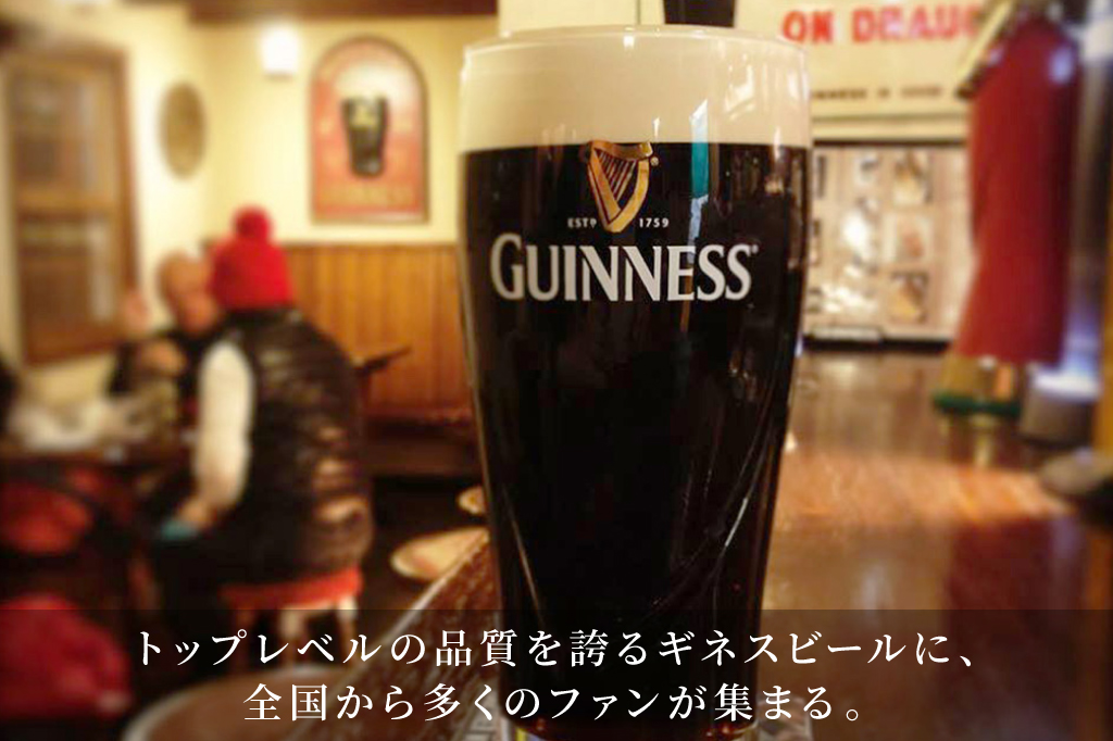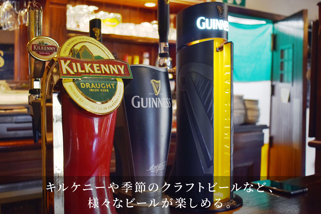 地下室で樽を徹底的に品質管理、国内屈指のクオリティを誇るギネスビール(900円)は、ギネス社からも認定。アイルランド人に愛される “BARRY’S”のアイリッシュティー(450円)やスペシャルティコーヒーなど、飲めなくても楽しい。