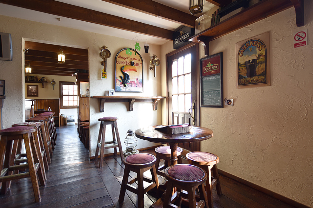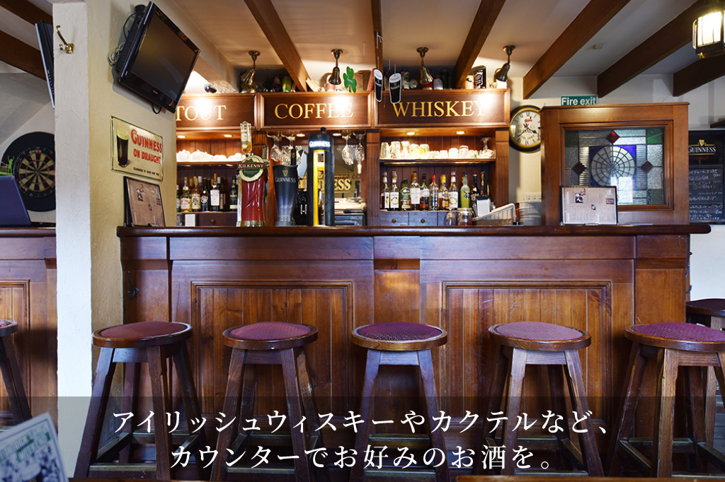 アイルランドのパブは、女性や子供も気軽に立ち寄って軽食やお茶を楽しむ。そんな村の社交場を八ヶ岳にとオープンした。アイルランドの会社がつくった外観、店内は、どこを見ても本場パブの雰囲気をそのままに感じられる。