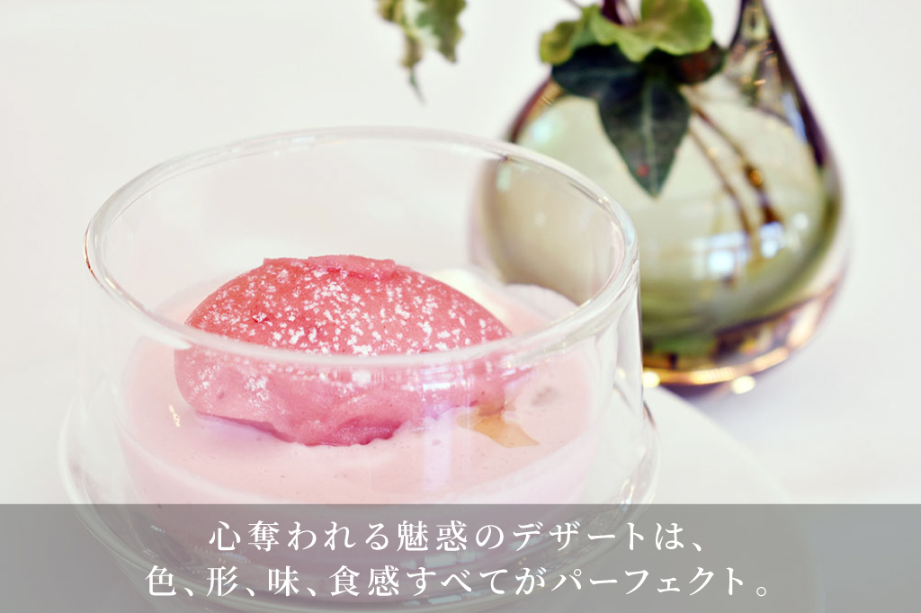 ランチコースは2,800円、3,800円、6,800円の3種類。2,800円でもアミューズ、前菜、スープ、肉料理、デザート、コーヒーまたは紅茶・小菓子が付き、ボリュームたっぷりで大満足!美味しいを超えて、驚きと感動のラインナップ。