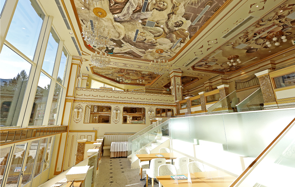 豪華な店内はパリの劇場をイメージして作られており、非日常的な雰囲気の中、優雅な時間を過ごすことができる。