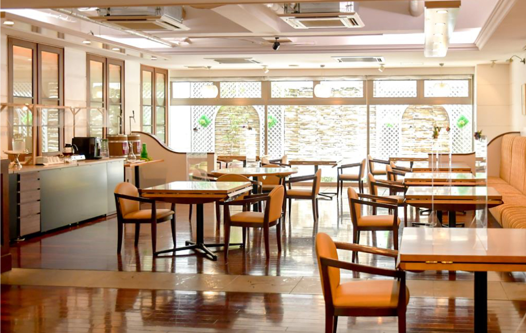 アーチの門をくぐり、石畳のエントランスの先には白壁のヨーロッパ調の佇まい。中央市山之神のアットホームな温かみに溢れる「山梨グランドホテル」に併設されたレストランということで、この長いアプローチからエレガンス香る“アフタヌーンティー”へといざない、プチ贅沢気分を盛り上げてくれる。ホテルならではのホスピタリティを味わいながら、大人のティータイムを。
