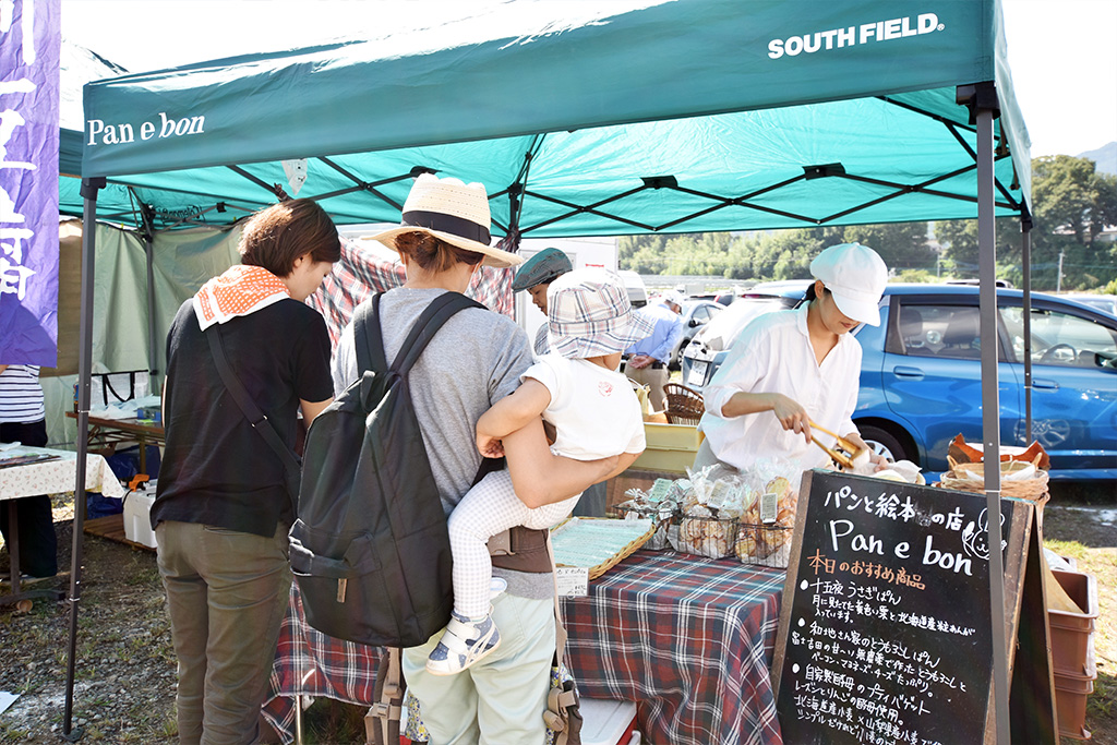 最初は小さな公園からスタート。その後朝市に賛同してくれた地域の皆様の協力があって徐々に広い場所で開催。野菜を生業としている方が多い勝沼という地域ならではの苦労もあったものの、朝市がきっかけで実店舗をオープンした方もたくさんいる。