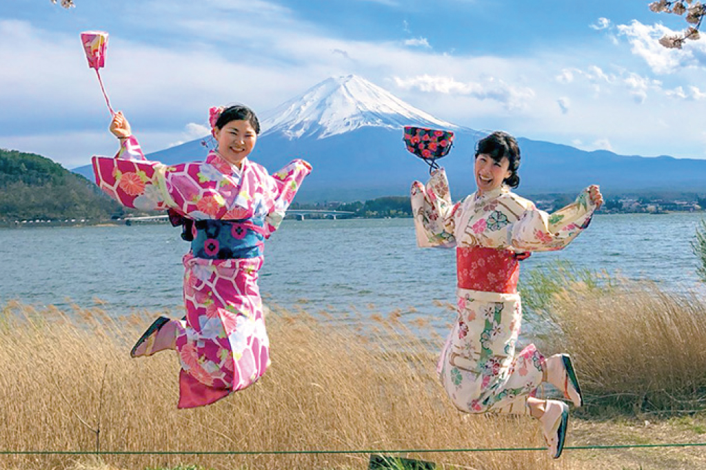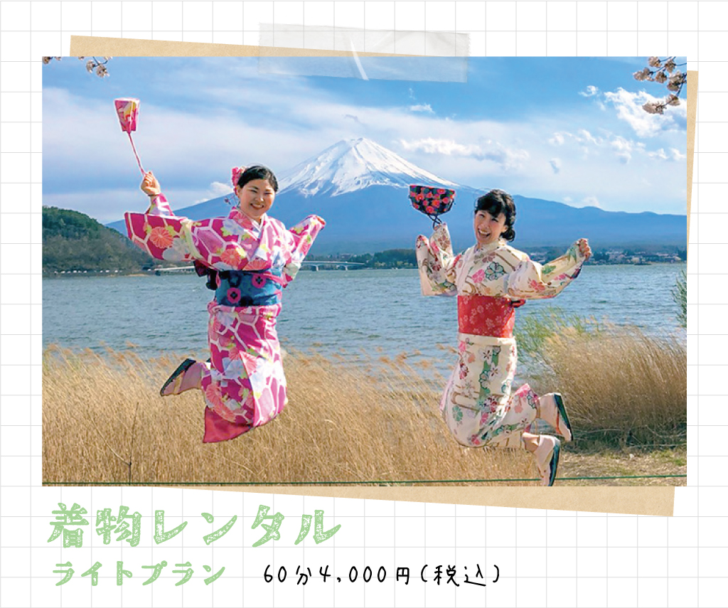 好きな着物に着替えて、河口湖や富士山を背景に記念撮影をしたり、近くを散策・観光したり♪