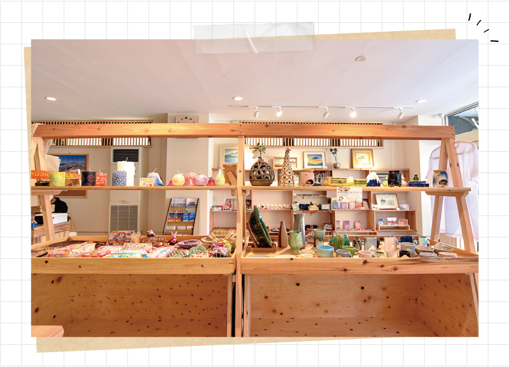 河口湖畔と好立地。富士山に関連した、地元のアーティストをピックアップした新たな形のショップ兼ギャラリー。