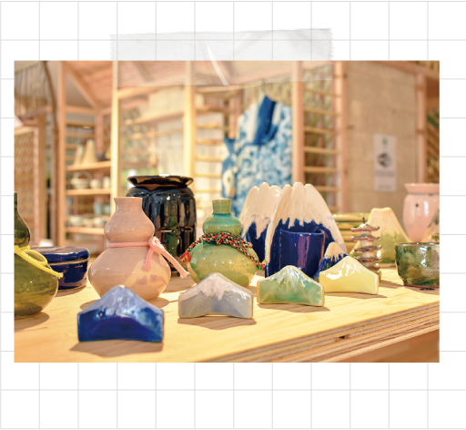 地元山梨や富士山周辺で活躍しているアーティストの民芸品や工芸品を取り扱ったセレクトショップ。