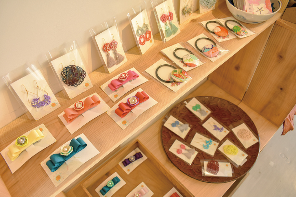 山梨出身のアーティストで、紙でできた紙こよりに、繊細な糸などを巻いて作る。素材が軽く、長時間身につけても体に負担が少ないのが特徴。