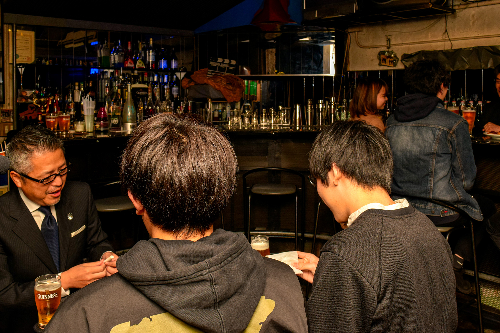 取材日は、ちょうどこの「甲府ん!路地横丁楽会」主催の新イベント「社長’sBAR」当日。路地横丁のバーに県内企業の社長が集まり、学生とざっくばらんに本音を飲みニケーションするというもの。就職・採用活動・説教は一切禁止!