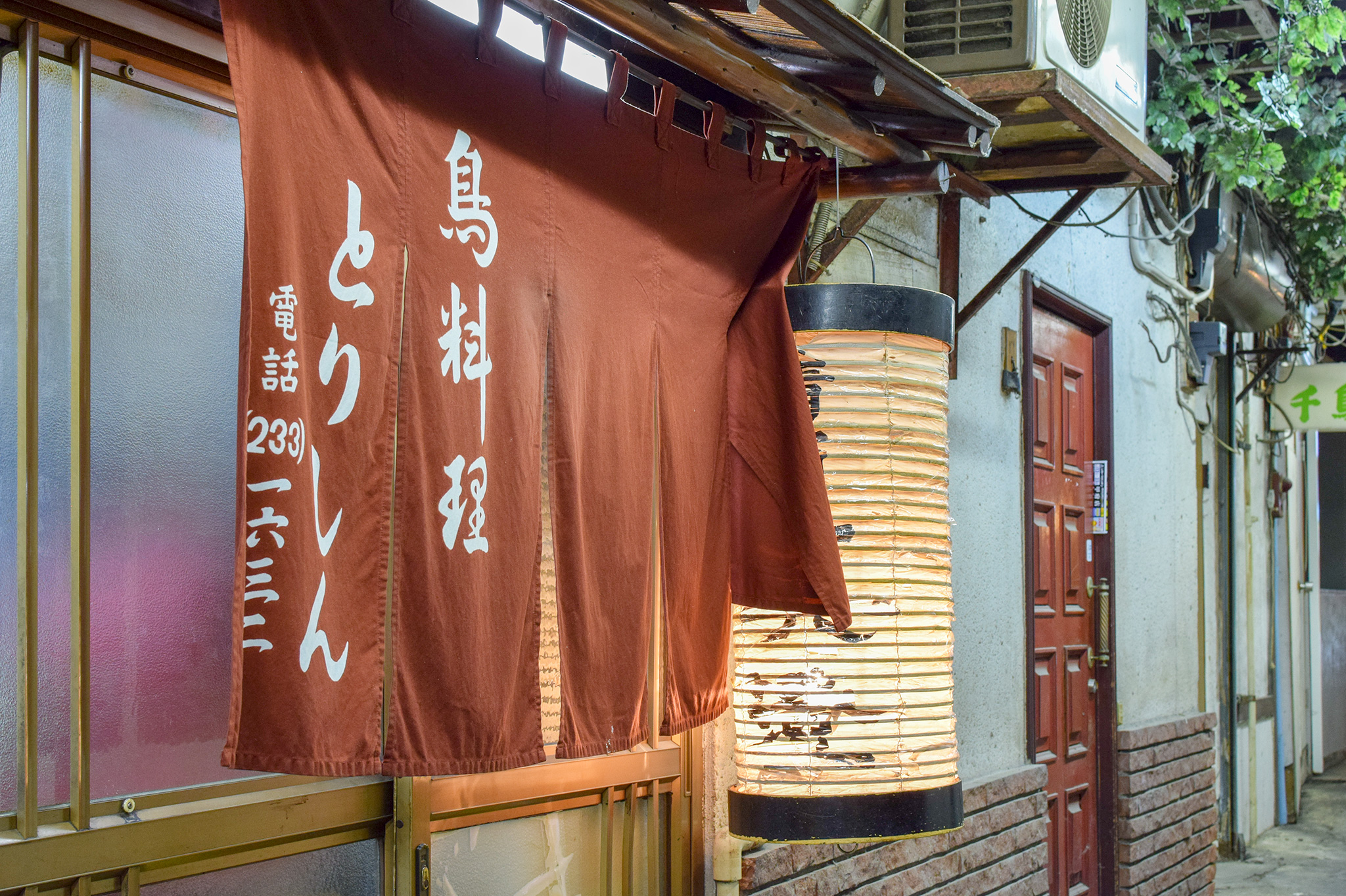 1961年開店という歴史を刻む路地横丁の広瀬通りに佇む鶏料理専門店。ノスタルジックなちょうちんが目印。
