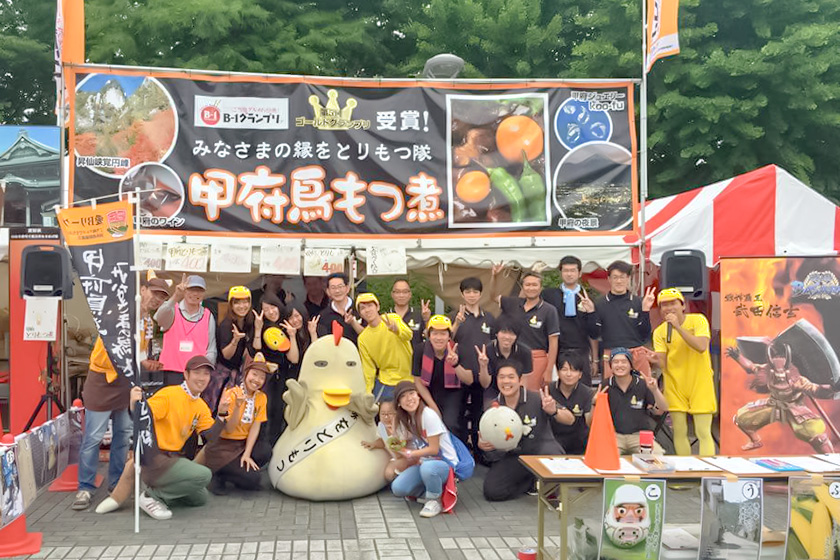 土橋さんといえば、2008年に結成された「みなさまの縁をとりもつ隊」を率いたことで有名な人。甲府のソウルフード、鳥もつ煮に着眼し、2010年の第5回B-1グランプリに初出展、見事ゴールドグランプリという、なんともドラマティックな有終の美を飾りました。