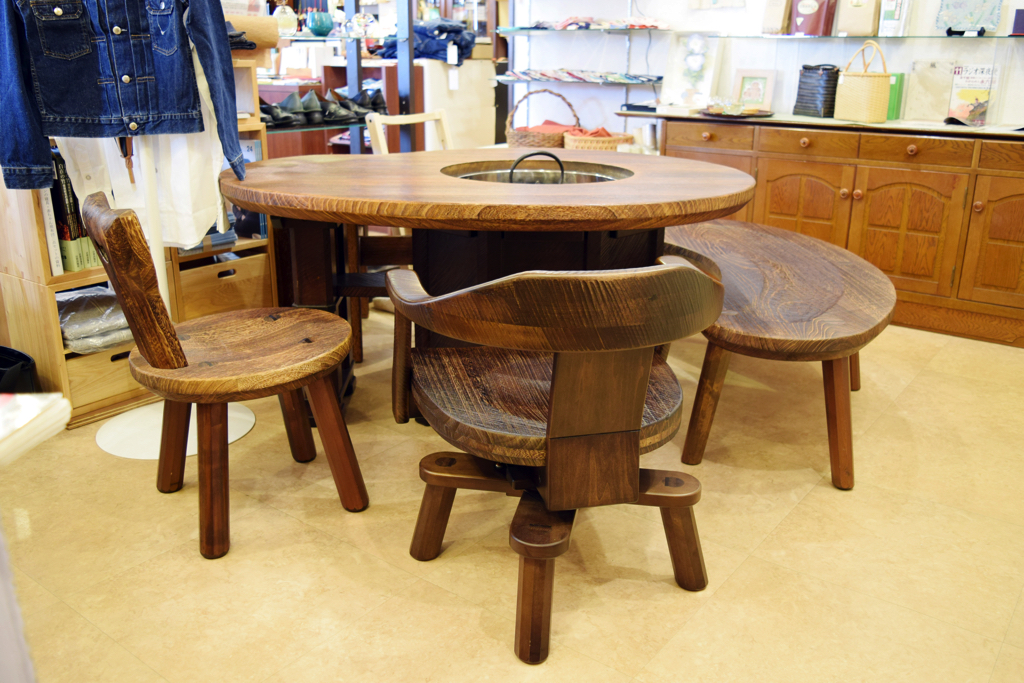 重厚感のある桐のテーブルと椅子は驚くほど軽く、ほんのり温かくて座り心地抜群。家具のイメージを覆す革命的な家具です。