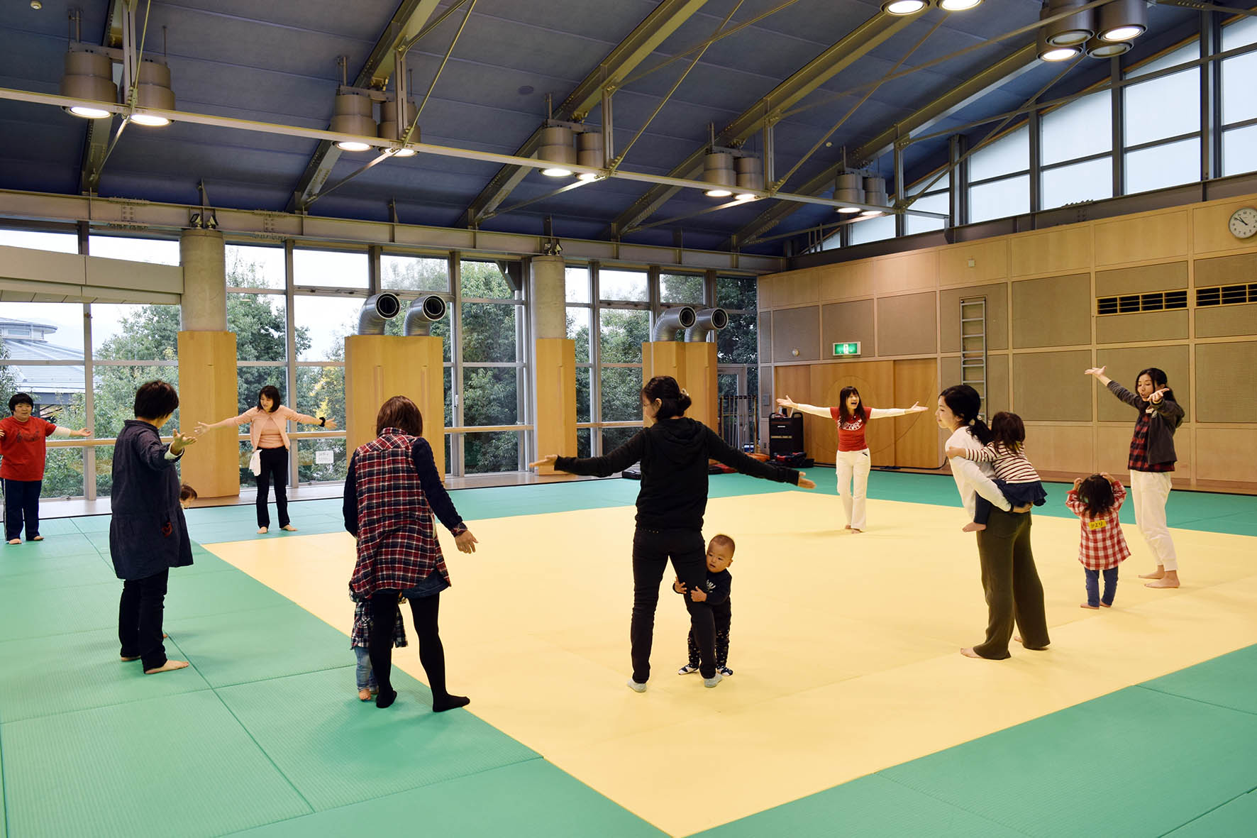 11月上旬、小瀬スポーツ公園内武道館で行われていた「あそびのおけいこ教室」を訪れました。