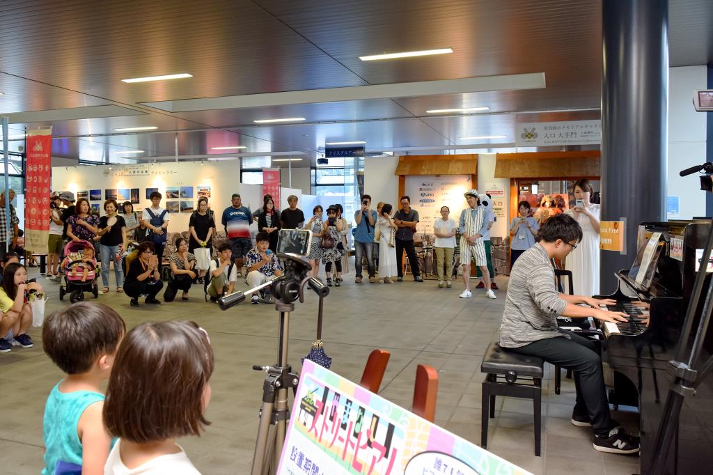 今年の8月1日から31日まで甲府駅ペデストリアンデッキに設置されたストリートピアノには、老若男女、県内外から多くの人が訪れ、ピアノとその空間を楽しむ姿がありました。