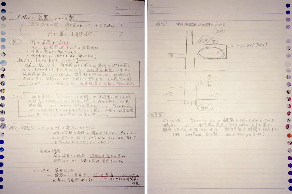 山梨ストリートピアノ実現のために、青柳さんがまず行ったことは企画書作り。