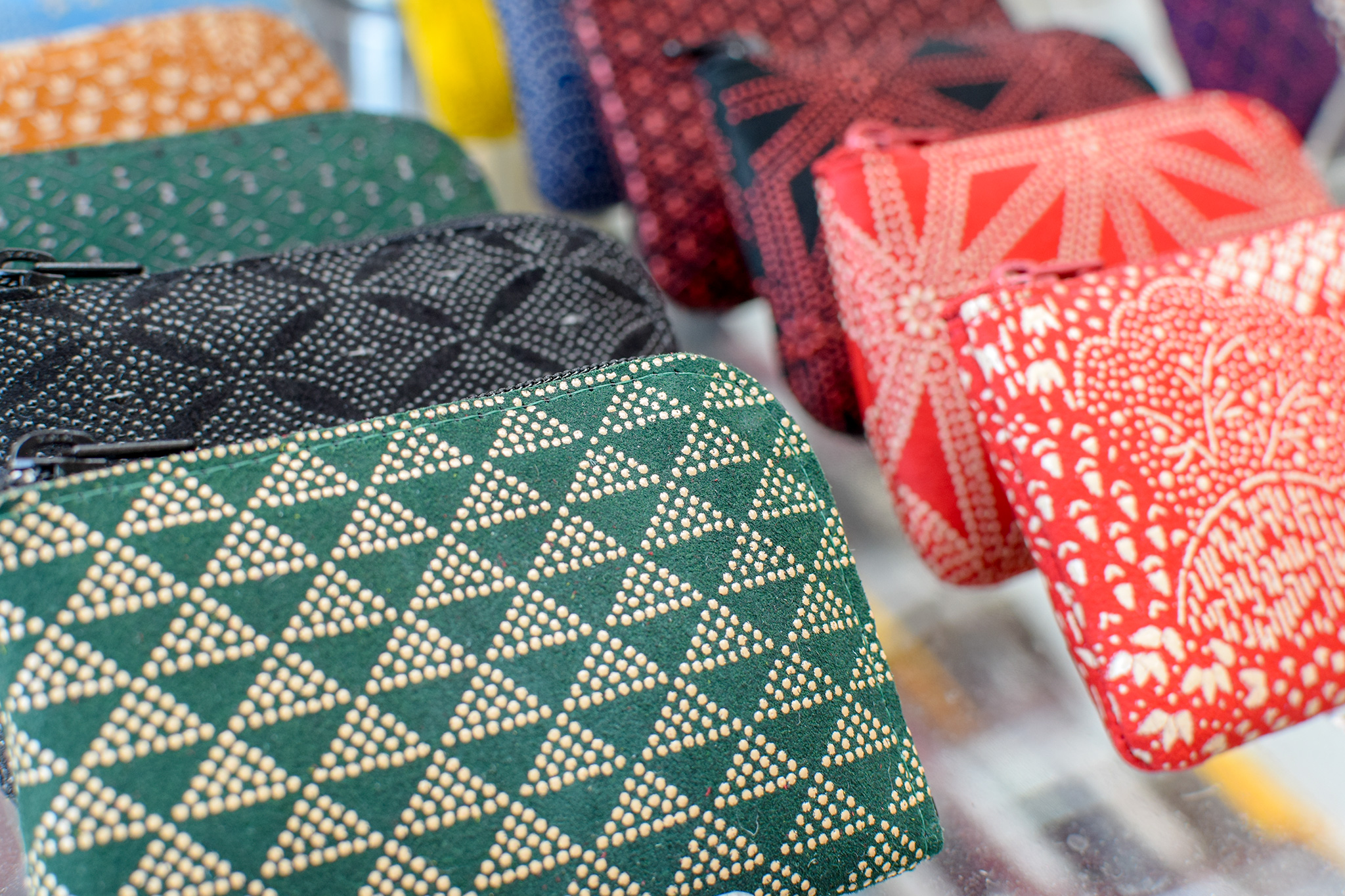 現在、山梨県に印伝を製作・販売する会社は4社。その中の1社である「印伝の山本」には、財布や名刺入れなど色鮮やかな甲州印伝が並びます。