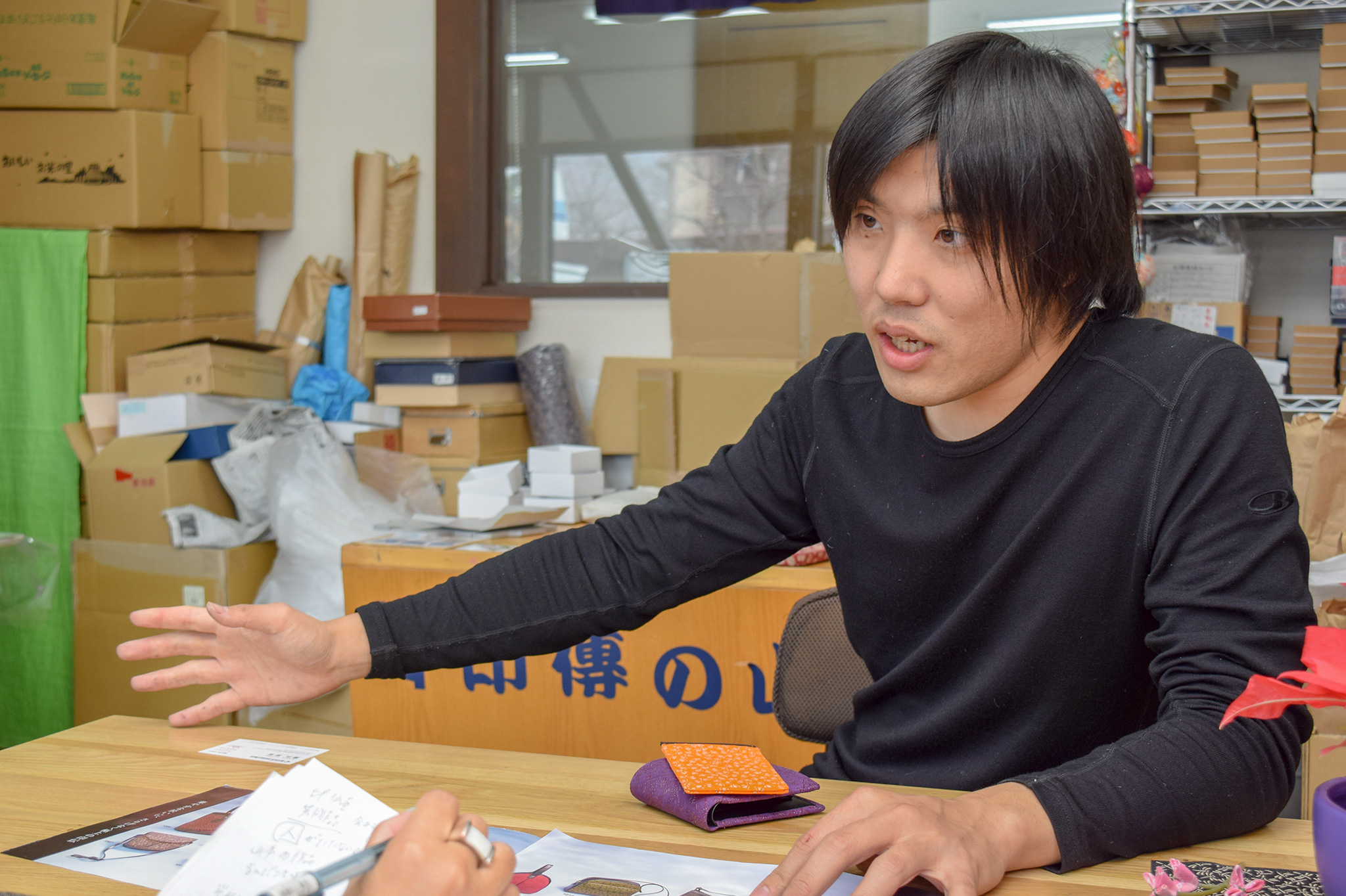 「印伝の山本」に入社後、マーケティングや商品を買ってもらうための流通のしくみなどに取り組む。