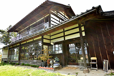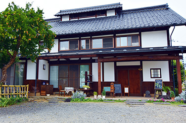笛吹市御坂町の埋草神社の隣にある、古民家カフェ黎明荘。甲府盆地や南アルプスを一望できる高台に構えたこのカフェは、築100年を超える歴史ある佇まいと、縁側から広がる日本庭園の趣が特徴だ。