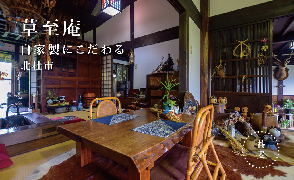 どこか懐かしくあたたかい…まるで実家に帰ってきたかのようなぬくもりに溢れる。囲炉裏や手作りの座卓で、自家製にこだわった安全で優しい手料理を味わう古民家蕎麦店。ここで過ごすひと時がこの上なく心地いい。