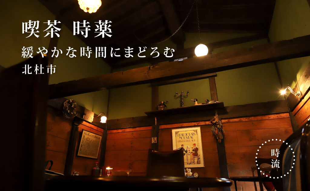 過去から現在、そして未来へと、とめどなく流れていく時間の中で、よいことも悪いことも常に過ぎ去っていくもの。そんな“時間”をテーマにした蔵の喫茶店、それが時薬。ゆるりと静かに過ごす、憩いのひと時が心の良薬となりますように。