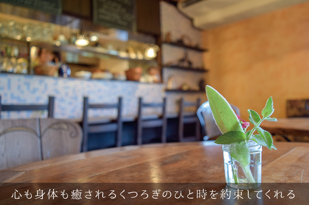農薬や化学肥料を極力控え、愛情たっぷりに育てた自家製の果物や、なるべく地元で仕入れた有機野菜を使用。食材本来の味がじんわりと感じるおいしさ。
