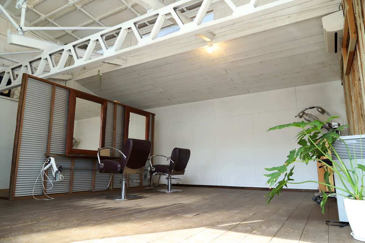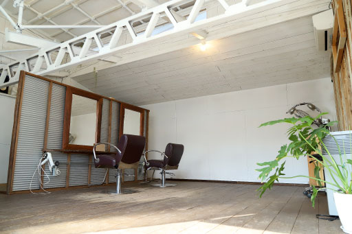 納屋は補強を重ね、ヘアサロンへと生まれ変わった。