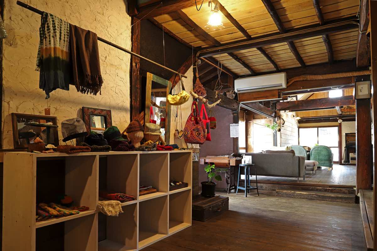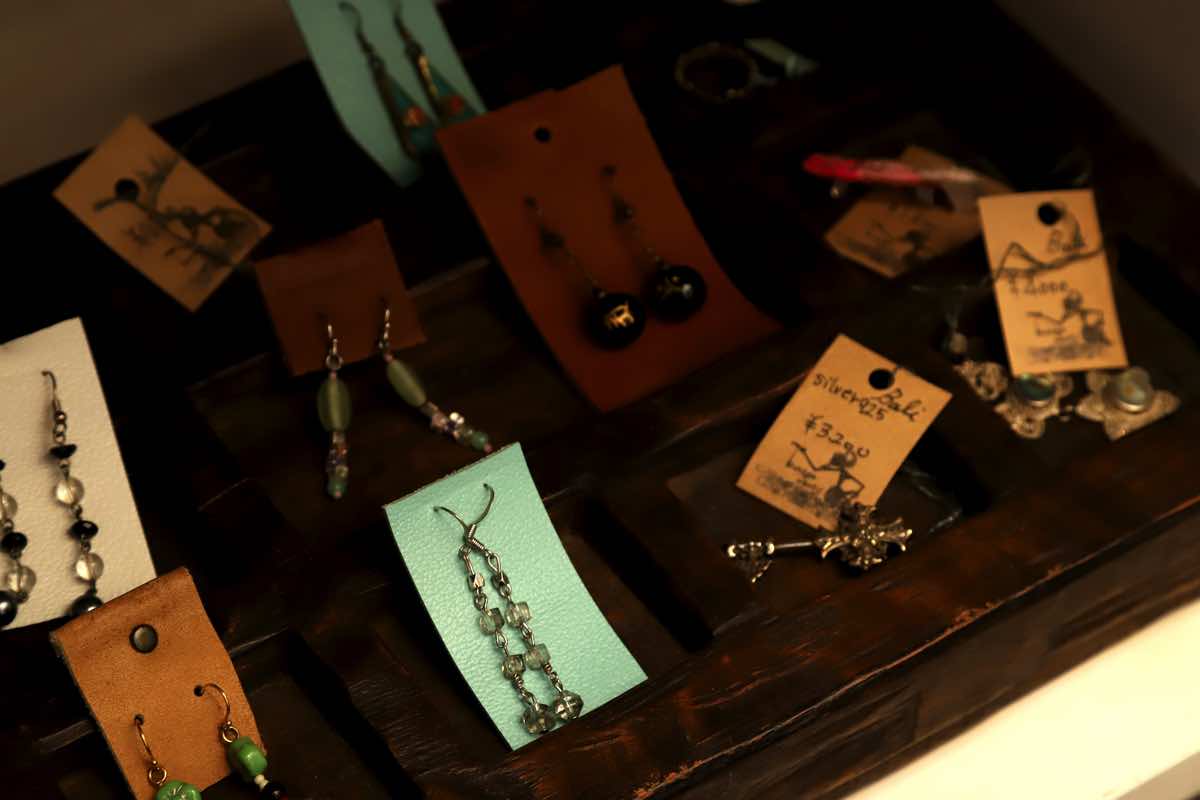 オーナーが手掛ける雑貨や作家たちによるアクセサリーの販売など、多岐にわたる雑貨が数多く並ぶ。