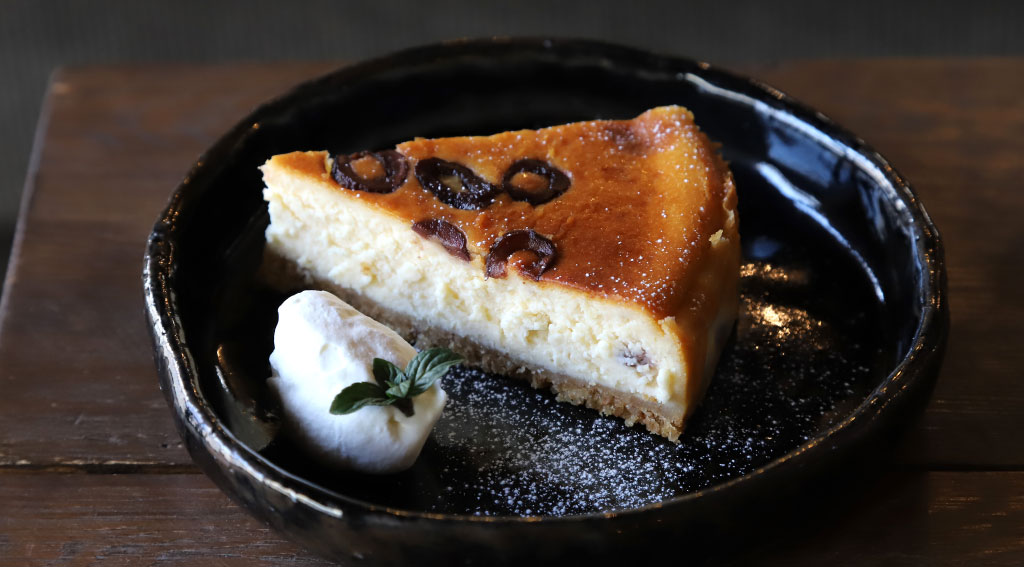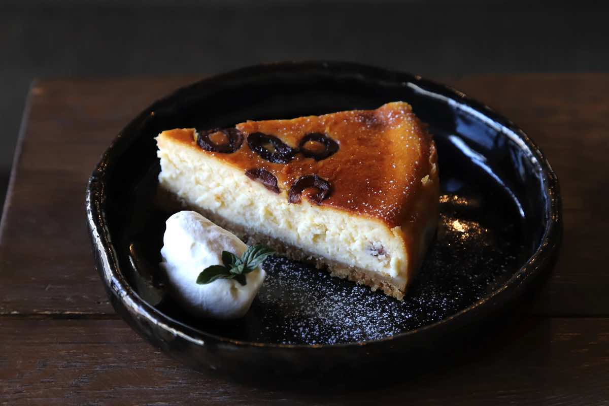 自家製のメープルシロップ漬けのブラックオリーブはメープルに漬けていることで渋さが少なく、濃厚なチーズケーキとの相性◎。