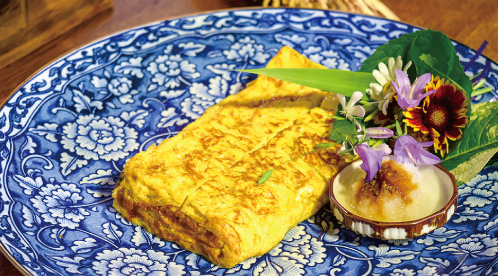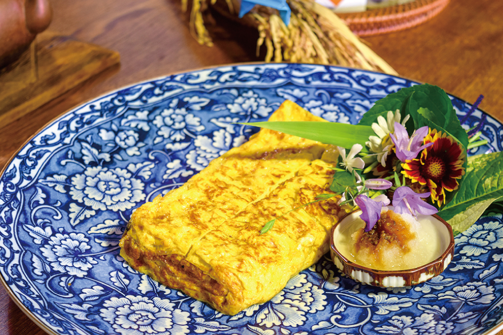 烏骨鶏の卵を使用した出汁巻きたまごも、人気のメニュー。一人前750円。