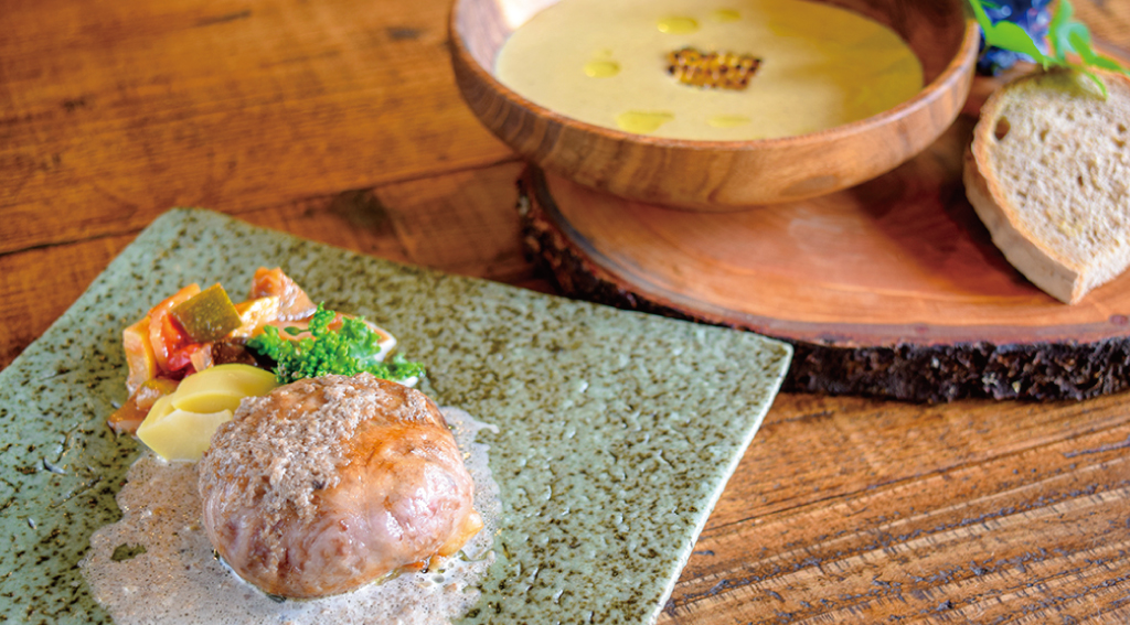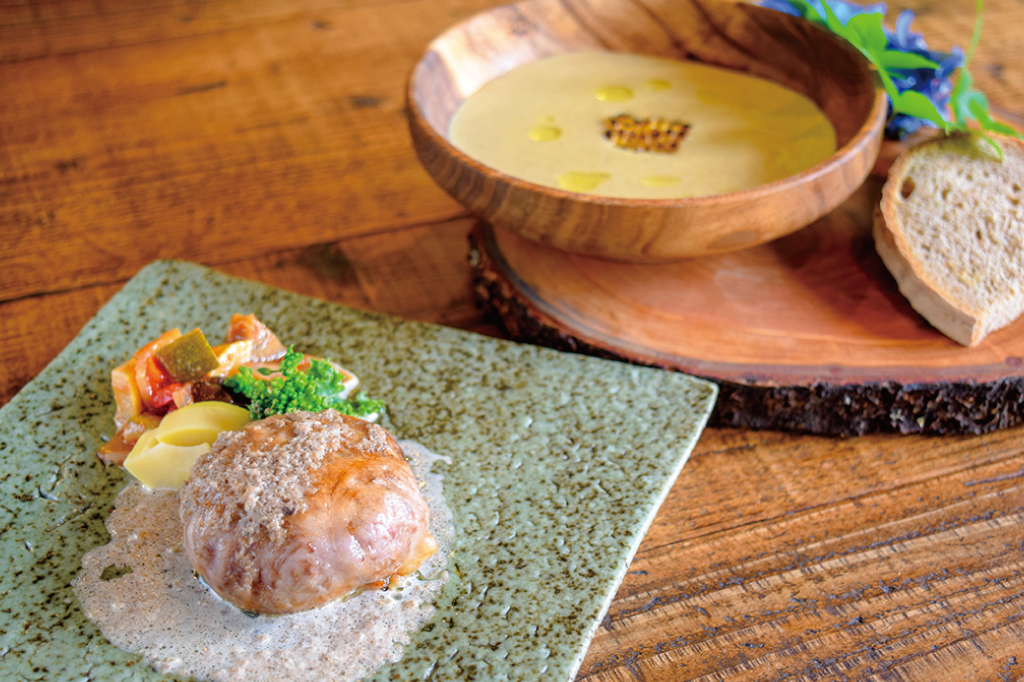 厳選した八ヶ岳南麓の食材を県内作家の器に、クラシックモダンなフランス料理の手法でアレンジする。