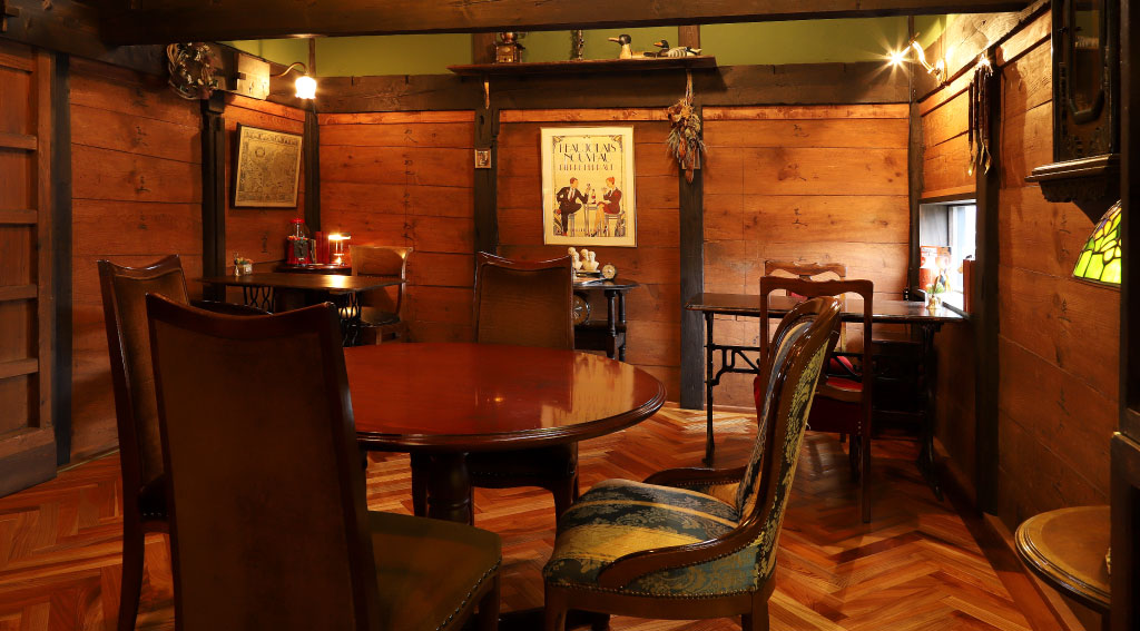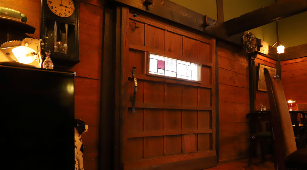 ずっしりと重い引き戸を開けると、そこは店内というより蔵の中…。木の温かさを感じ、まるでここだけ時計の針が止まっているかのような錯覚に陥る不思議な空間が広がる。