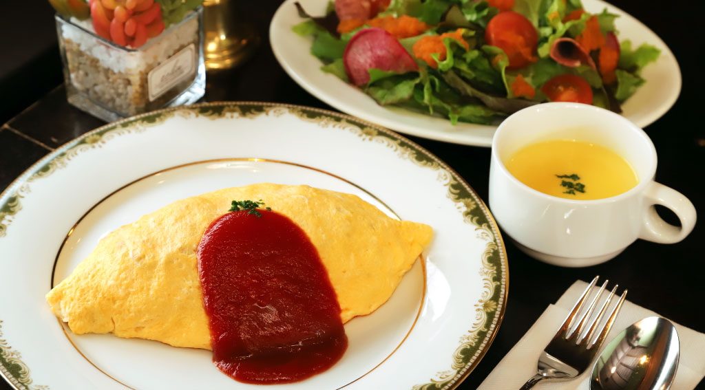 明野の美味しいたまごでくるりと包んだ美しいフォルムはホテルで鍛えられた腕前だ。