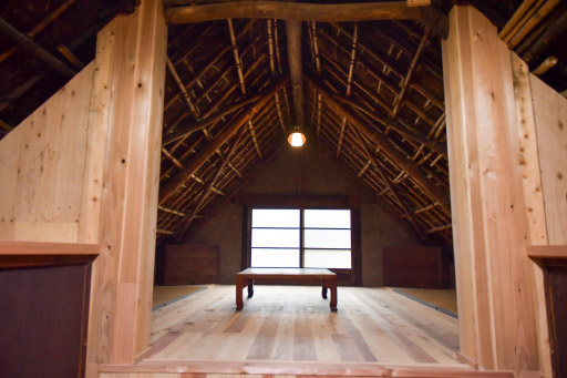 蚕室だった2階は独特の建築様式で当時の面影を残す。