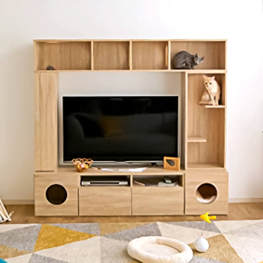 猫と暮らす人のための、猫中心の生活を豊かにするアイテム。テレビ台は、もはや付属品。猫ちゃんが大好きな隠れるスペースもあり、きっと気に入ってくれるはず。実は収納力もあり、家具としても優秀。