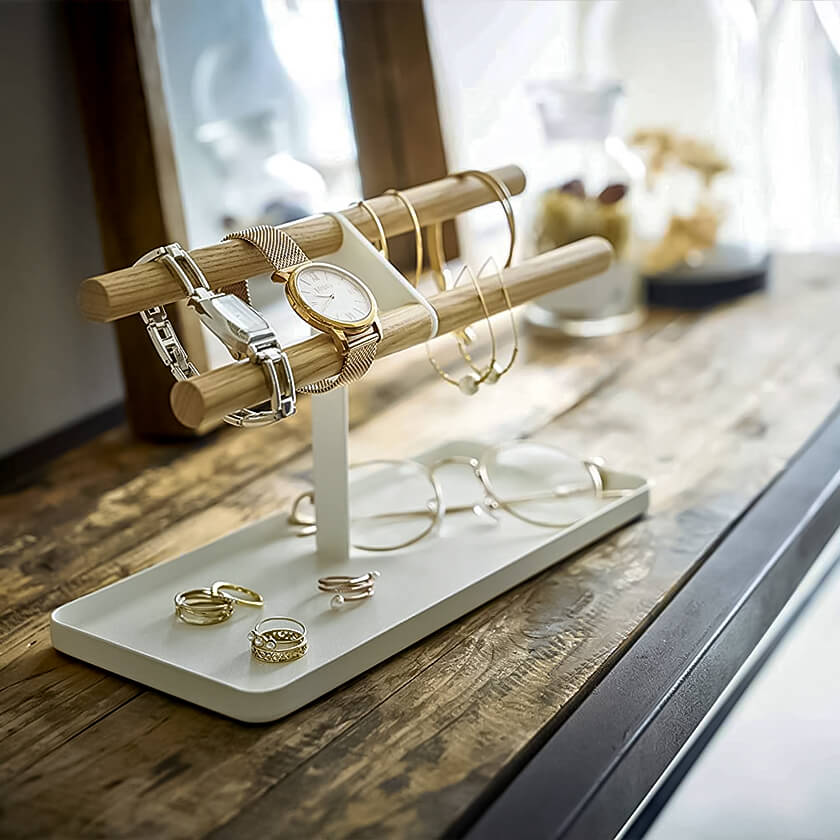 身に着けていないときだって、おしゃれに…。収納するというよりも、明日身に着けるアクセサリーを並べておきたい。帰宅時に外して、置き忘れするのも防いでくれる。