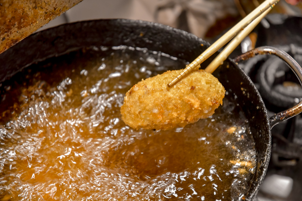 昭和レトロな甲府の横丁に軒を連ねる「くさ笛」のコロッケといえば、常連客なら知らない人はいないほど有名。60年前から変わらぬレシピで、名物女将が目の前で揚げてくれる。