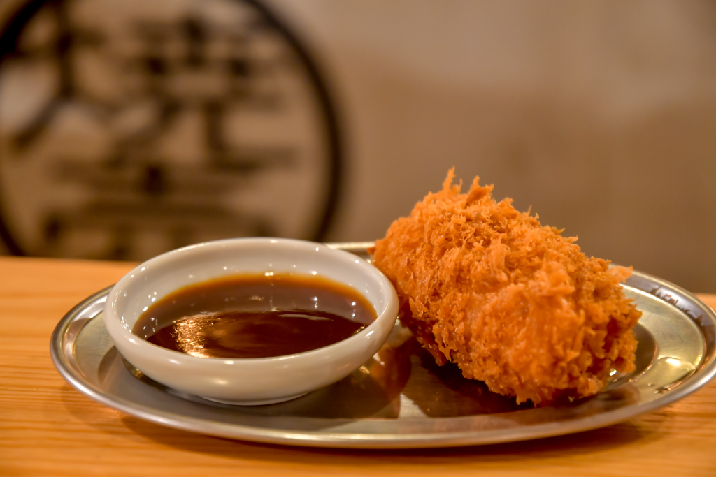 180度の油でサクッと揚がった衣にクリームがみっちり包まれたカニクリームコロッケは、カニの旨味がぎゅっと詰まって食べ応え◎。食べ進めていくと、どうやらカニのほかにマカロニも入っているみたい。ふわっふわのクリームの中に一癖あるマカロニの弾力がアクセントとなり、最後まで飽きずにいただける。洋食のイメージの強いカニクリームコロッケだけど、ジョーのコロッケは塩気があって、お酒と相性が良さそう♪これは、焼売に劣らず、私ランキング堂々の第1位に昇格決定!