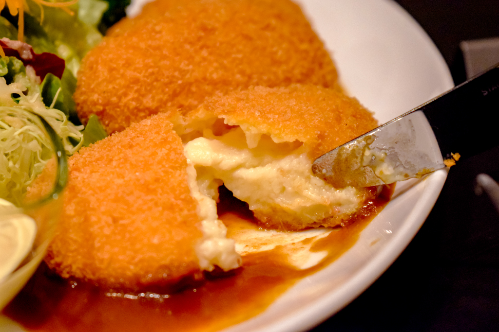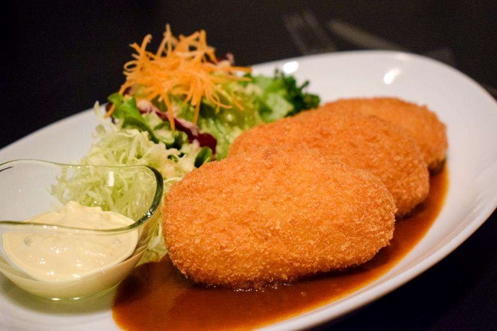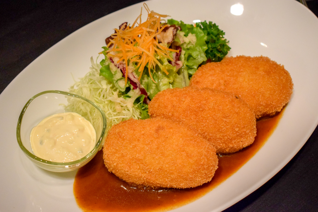デミグラスソースとともに味わうカニクリームコロッケだなんて、とっても贅沢!