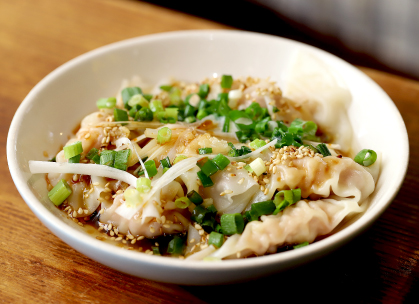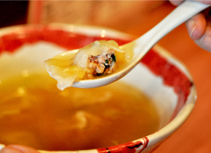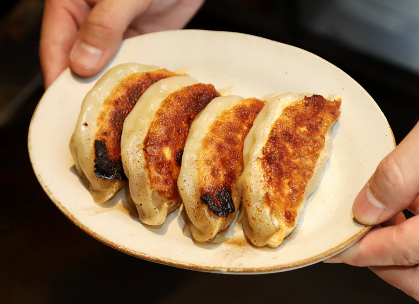店主のたまおさんが皮から手作りする餃子は絶品!パリパリの焼き餃子も美味しいですが、モチモチを楽しめる水餃子を特製ラー油で食べるのがおすすめです!(手作り餃子 紅)