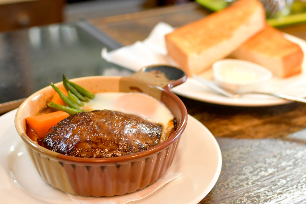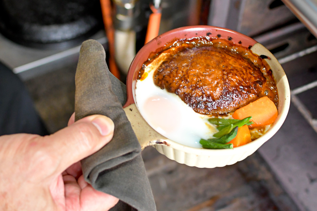この味に魅せられた、多くの常連さんたちが足しげく通うという自慢の煮込みハンバーグを求め、いざ…。