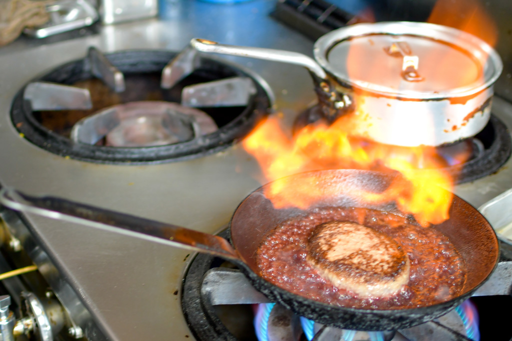 フライパンで1回焼くが、ここで焼き切らずに半分焼いたらオーブンへ。