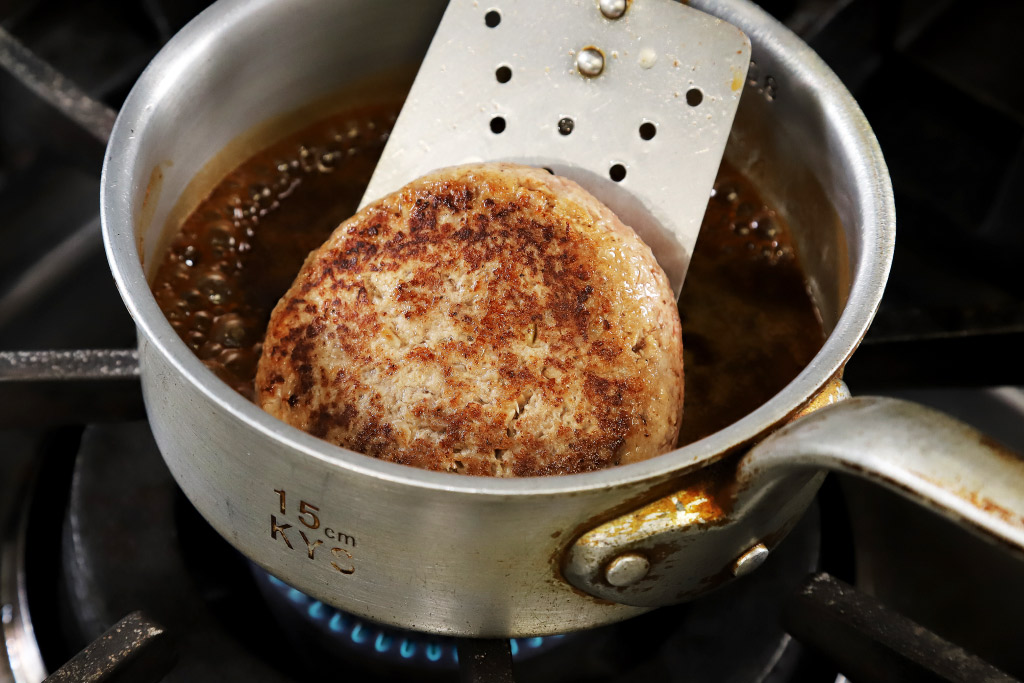 ハンバーグのタネは、具材は具材で別に作り、注文を受けてから具材と肉を合わせ、成形する。毎日肉を仕入れに行き、その都度作る。手間だけど、これが小さな店だからこそできる、鮮度と美味しさへのこだわりなのだという。
