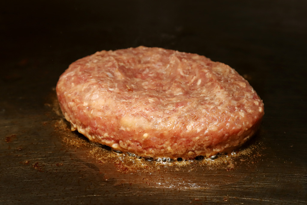 ひとつ220gもあるボリュームたっぷりのハンバーグは、ふっくらと大きく焼く前から、大量の肉汁を携えているのが分かる。