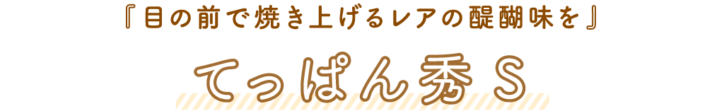 目の前の鉄板でジュウジュウ焼き上げっていくハンバーグ…。音、香りとともに視覚効果も抜群で、これはたまらない‼てっぱん秀Sならではのお楽しみに溢れるハンバーグは、五感をフル稼働させて味わうべし!