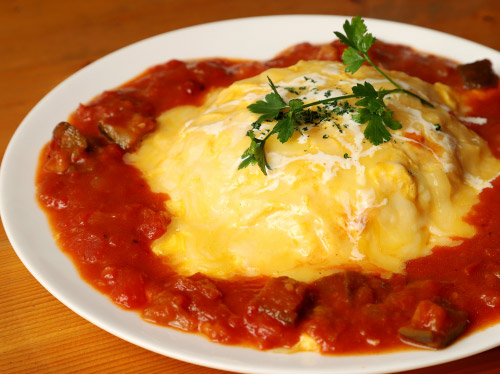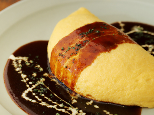 ランチで頂きました。デミグラスソースとトマトソースがあり、今回はデミグラスソースのオムライスを頂きました!ケチャップライスの優しい味とコクのあるデミグラスソースがマッチしてとても美味しかったです!また、ランチには、スープや小鉢(3種類)とドリンクも付いてきます。スープや小鉢もとっても美味しかったです。 -