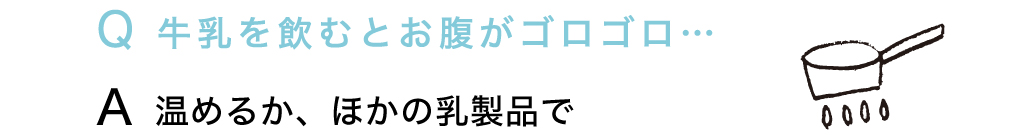 Q 牛乳を飲むとお腹がゴロゴロ… A 温めるか、ほかの乳製品で