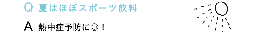 Q 夏はほぼスポーツ飲料 A 熱中症予防に◎!
