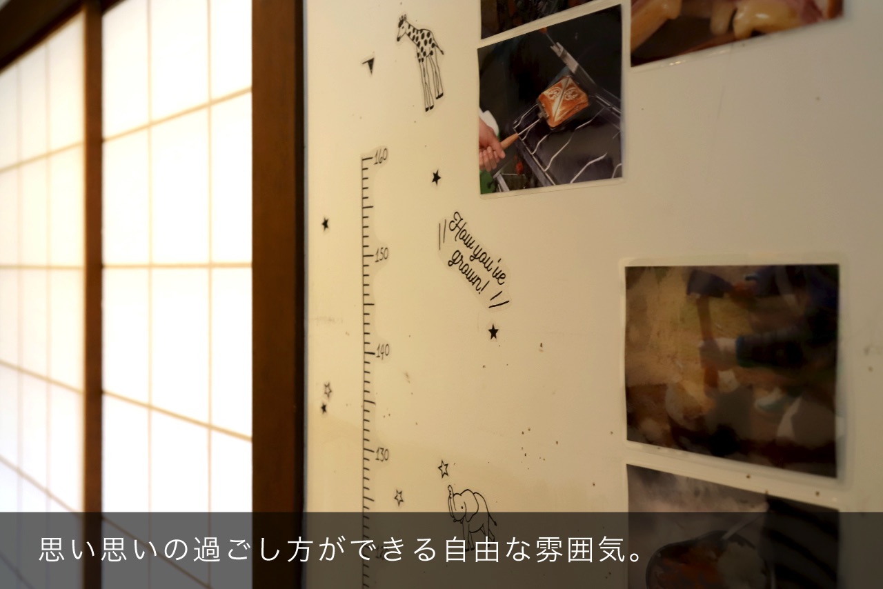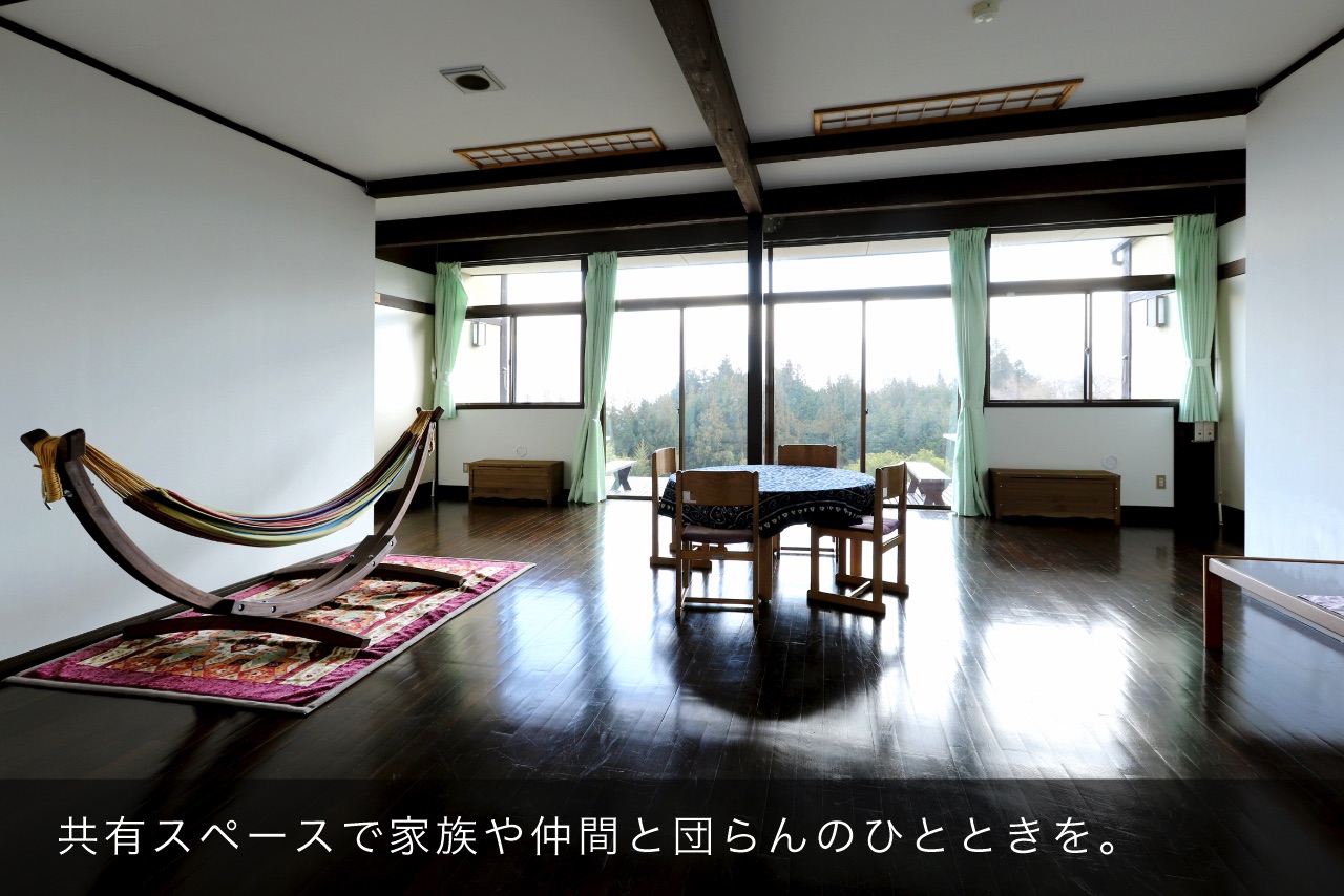大部屋・中部屋の各部屋の間には共有スペースがあり、家族はもちろんのこと、仲間やサークルなどの団体利用にもおすすめ。